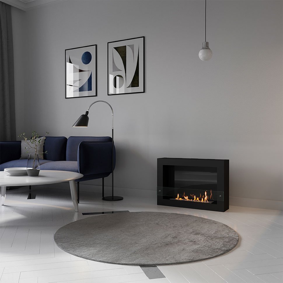 Очаг – это емкость куда заливается жидкое топливо. Емкость внутри заполняется керамическим материалом, который впитывает биотопливо, и в случае опрокидывания камина топливо не разливается. За счет этого конструкция стала полностью пожаробезопасной. Очаг встраивается в корпус из стали, который окрашивается специальной термостойкой краской, или же в заранее подготовленную нишу, изготовленную из негорючих материалов.