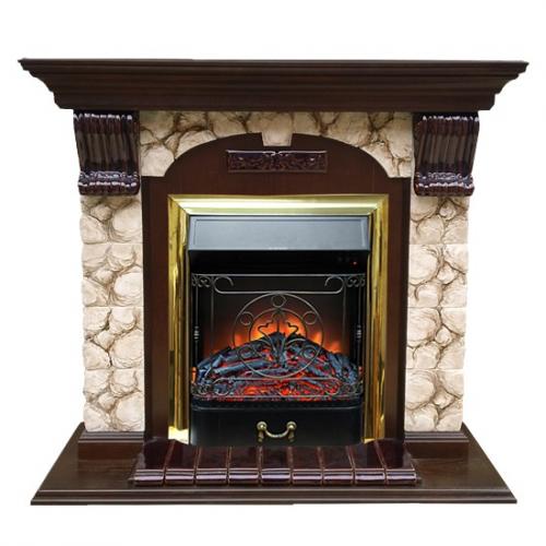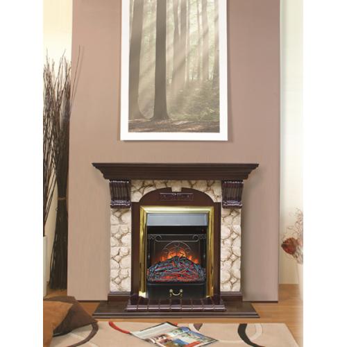 Каминокомплект Glenrich Арочный Карелия (дуб)+Fobos Brass